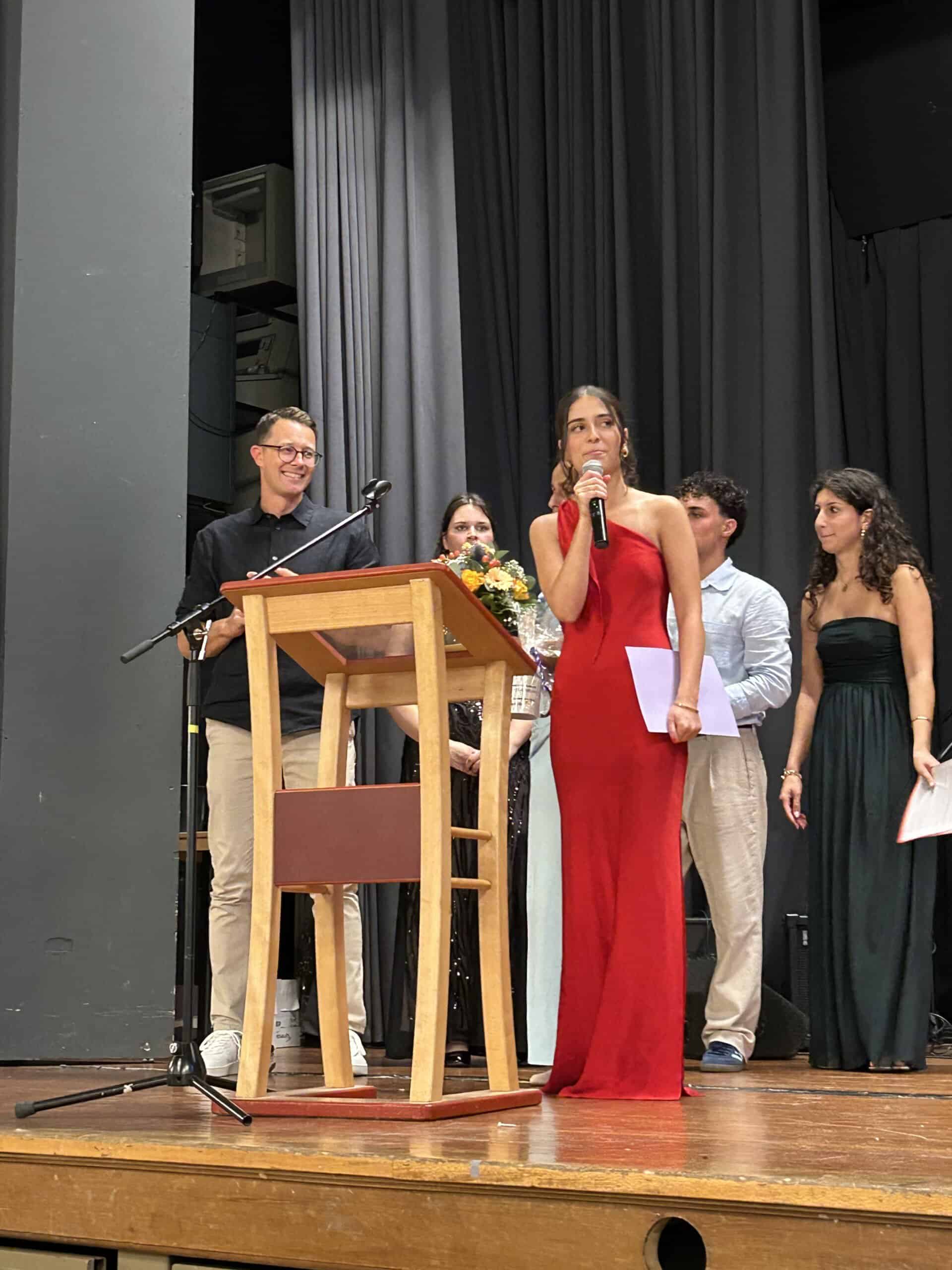 Ebenso lobte unsere Elternbeiratsvorsitzende Frau Dett die Abiturient*innen. Aufgelockert wurde die Zeugnisverleihung von unserer Schulband. Durch das Programm führte, wie in den vergangenen Jahren, Frau Bacher.
