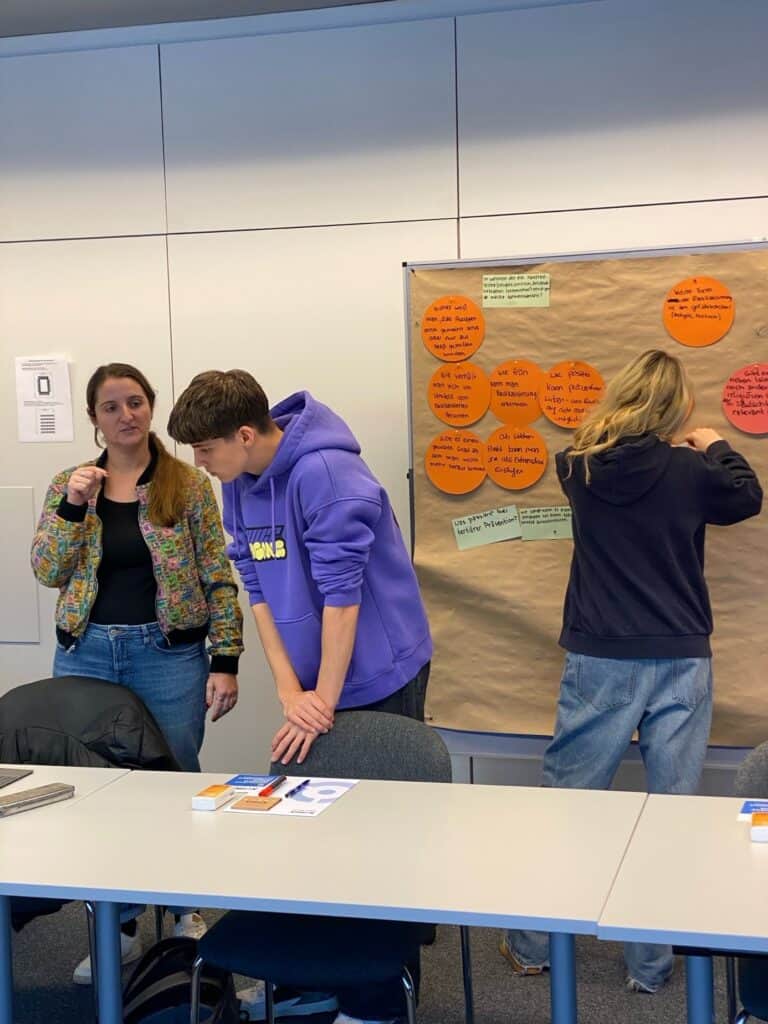 Der Vormittag begann mit Herrn Paul Marx, der mit den SchülerInnen eine vertiefte Nachbesprechung des Theaterstücks durchführte. In dieser Einheit stand besonders die Metaebene des Gesehenen im Fokus: Die Jugendlichen reflektierten innere und äußere Faktoren von Radikalisierungsprozessen und arbeiteten mit verschiedenen Übungen an einem tieferen Verständnis der Mechanismen.