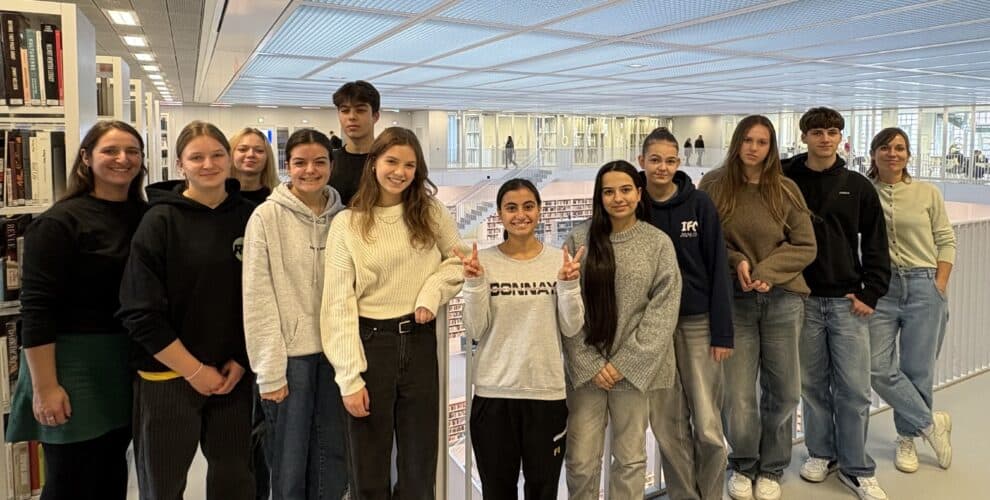 Recherche Workshop des Seminarkurses in der Stadtbibliothek Stuttgart Am Nachmittag des 23. Oktober 2025 besuchte der Seminarkurs der Jahrgangsstufe 1 gemeinsam mit Frau Baum und Frau von Dessien die Stadtbibliothek am Mailänder Platz in Stuttgart. Zu Beginn erhielten die Schülerinnen und Schüler eine spannende Führung