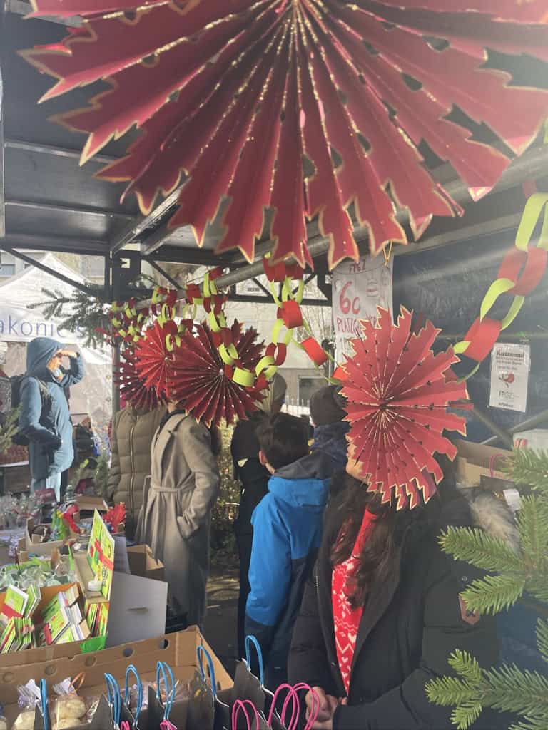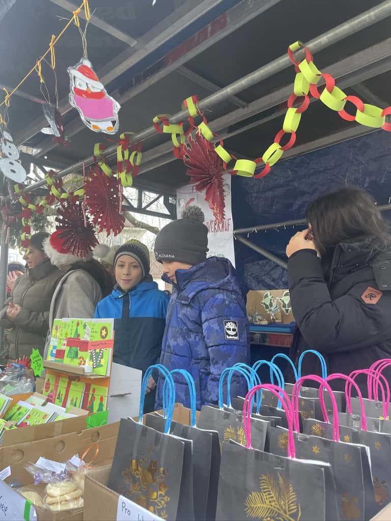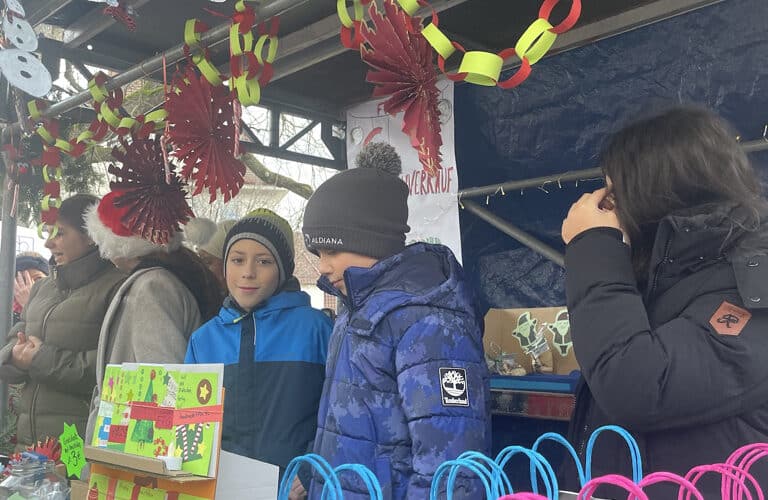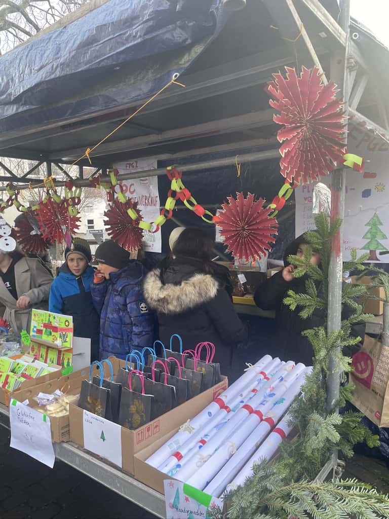 Es ist eine lange Tradition, dass zwei sechste Klassen am Adventsmarkt rund um die Johanniskirche Selbstgebackenes und Selbstgebasteltes anbieten. Auch dieses Jahr waren die Klassen 6 b und 6 c unter der Betreuung ihrer Klassenlehrer*innen Frau Klemmer und Herrn Mayer auf dem Adventsmarkt zu Gast. Mit Unterstützung vieler engagierten Eltern war die Teilnahme ein großer Erfolg. Die Bürger Zuffenhausens finden auf diesem Markt das eine oder andere kleine Geschenk und so konnten auch dieses Jahr die Schülerinnen und Schüler einen erfreulich großen Umsatz machen, mit dem sie eine Klassenaktivität durchführen werden. Herzlichen Dank gilt der Firma Kußmaul, die in wunderbar langer Tradition den Stand für unsere Klassen aufbaut. Bericht und Bilder: Ulrich Göser