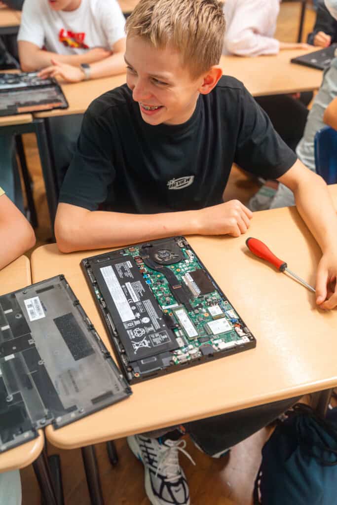 Wir hatten das IT Ersthelfer Projekt zu Gast. Das bundesweite Modellprojekt bietet Hilfe zur Selbsthilfe an. Gemeinsam mit unseren Partnerschule Lindenrealschule und Schloss Realschule für Mädchen durften insgesamt 60 Schülerinnen und Schüler anstatt des regulären Unterrichtes zu besuchen an einem vielfältigen Programm rund um die IT teilnehmen. Programmpunkte waren Fakenews erkennen, die Hardware eines Laptops kennenlernen, KI Prompten und Einblicke in die Augmented Reality und Robotik sowie vieles mehr. Das Projekt wurde durchgeführt von Experten. Wir bedanken uns bei den Organisatoren und deren Partner: BG 3000, EnBW und Netze BW.