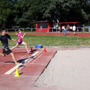 Geschicklichkeit und Bewegungsfreude waren gefragt bei den Bundesjugendspielen am 18. und 21. Juni. Bei schönstem Sommerwetter traten 240 Fünft- und Sechstklässler*innen an zahlreichen Spiel- und Spaßstationen gegeneinander an und legten sich beim 50-Meter-Sprint, beim Weitsprung und beim Weitwurf sichtlich ins Zeug. Mit dabei: unsere Schulsanitäter, die jedoch zum Glück keine größeren Einsätze hatten, und die SMV. Allen Organisator*innen und Helfer*innen herzlichen Dank!
