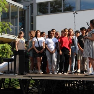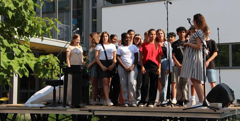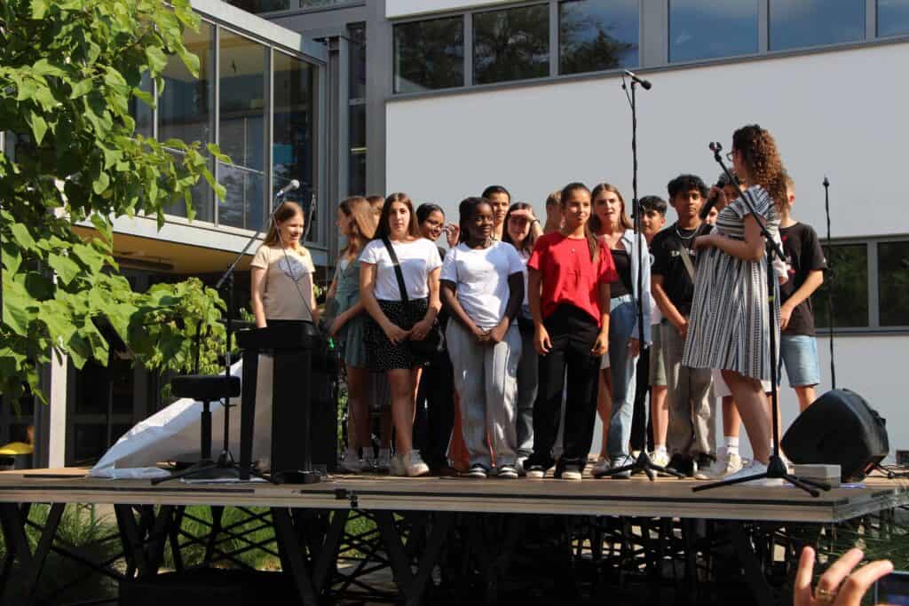 Frau Dett, unsere Elternbeiratsvorsitzende, und Herr Göser, unser Schulleiter, eröffneten die Feier. Danach folgte ein vierstündiges, abwechslungsreiches Bühnenprogramm mit der Übergabe von Urkunden, kurzen Präsentationen sowie