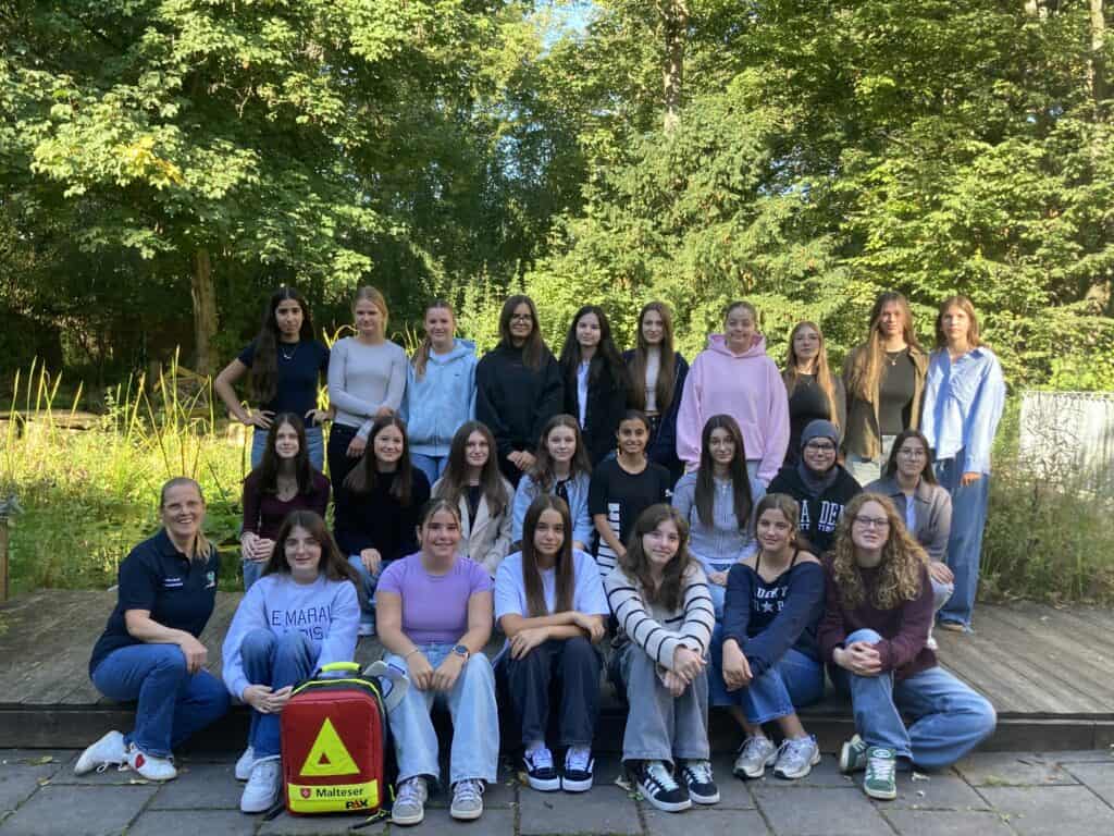 Ihre Ausbildung haben die Schulsanitäter bei den Maltesern absolviert. Nach 38 Lehrstunden, die von der Jugendabteilung des caritativen Hilfsdienstes durchgeführt worden sind, haben alle Schüler*innen die praktische Prüfung bestanden und sichern nun die Erste-Hilfe-Versorgung an unserer Schule und betreuen alle Schulveranstaltungen in sanitätsdienstlicher Hinsicht.